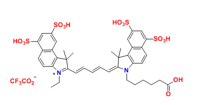 Cy5.5酸(Cy5.5)已用于標記生物分子,用于熒光成像和其他基于熒光的生化分析。它們廣泛用于標記肽,蛋白質和寡核苷酸等。Cy5.5?染料是最常見的紅色熒光團中的一種。